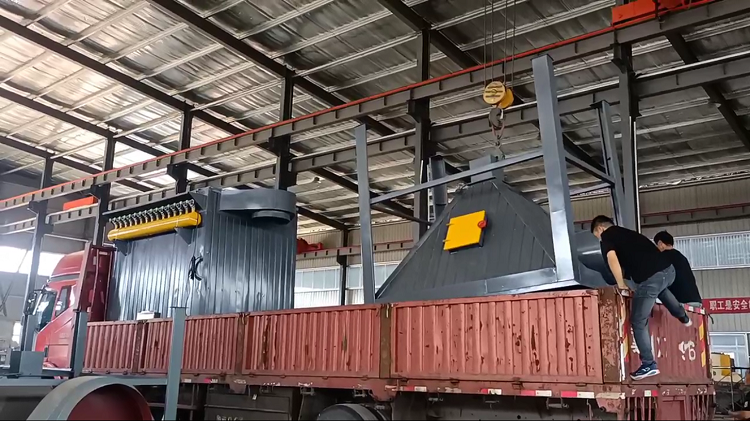 布袋除塵器和活性炭過(guò)濾箱安裝裝車發(fā)貨了??蛻舻仁肇洶?。
